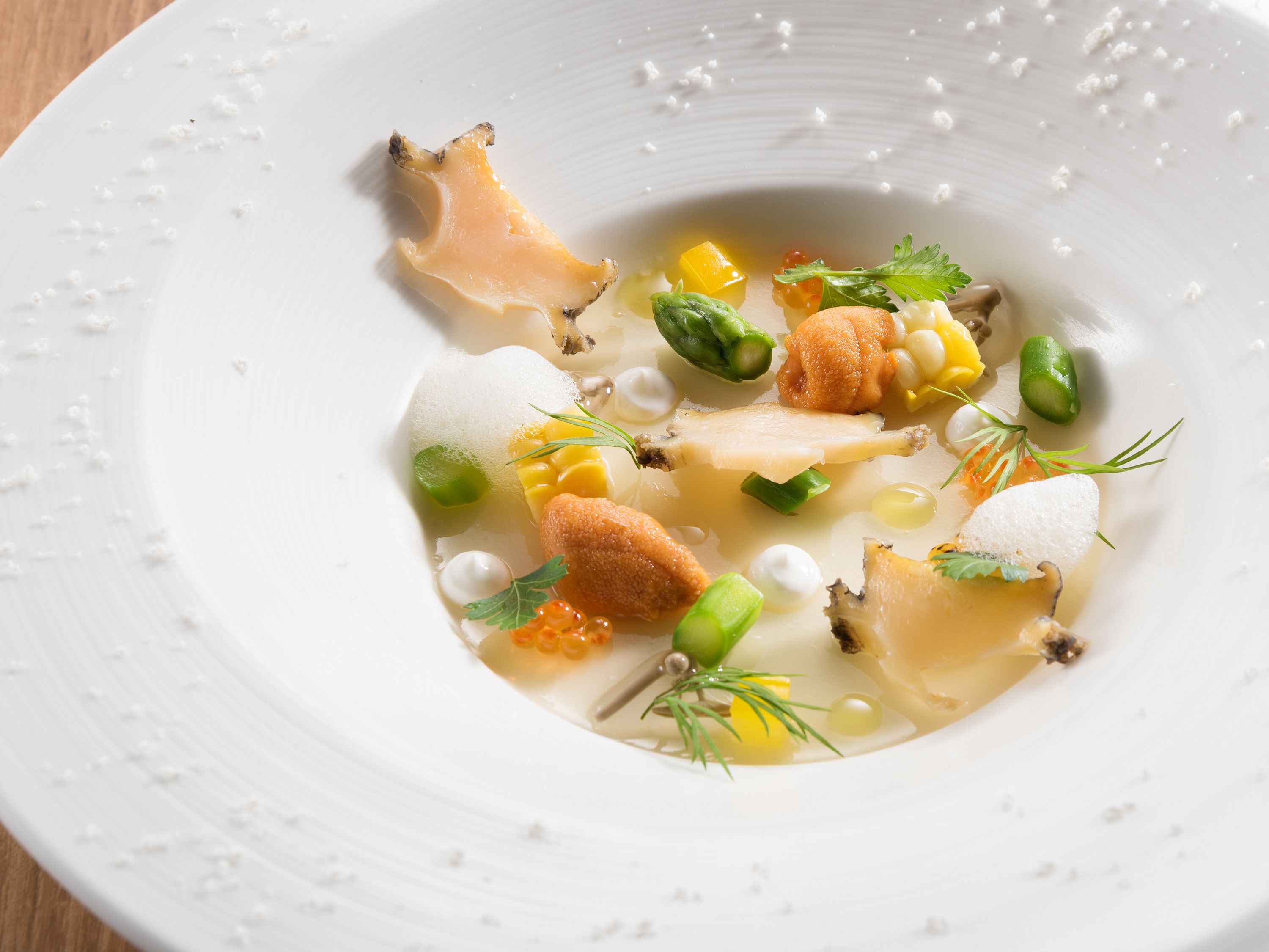 Sun shines through the large windows, a great place to see the night view of Fukuyama. To serve the meat deliciously, their carefully selected steaks are delicately cooked on an iron skillet. Enjoy savory, grilled, juicy, freshly made steak. Each chef has a designated field, such as fish dishes and desserts, and they offer meals using seasonal ingredients.
