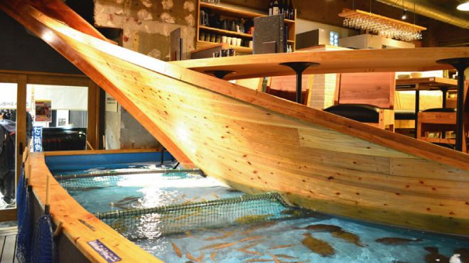 What you can see from the huge boat inside the restaurant is the fresh fish stocked that day. At the Zauo Shibuya restaurant, whose concept is "fishing fun," you can feel as if you are on a fishing boat. The seafood stock changes every day, and you can enjoy the fish they caught on the spot as grilled fish, fried chicken, or sashimi. Enjoy carefully selected sake and shochu produced by Zauo.
